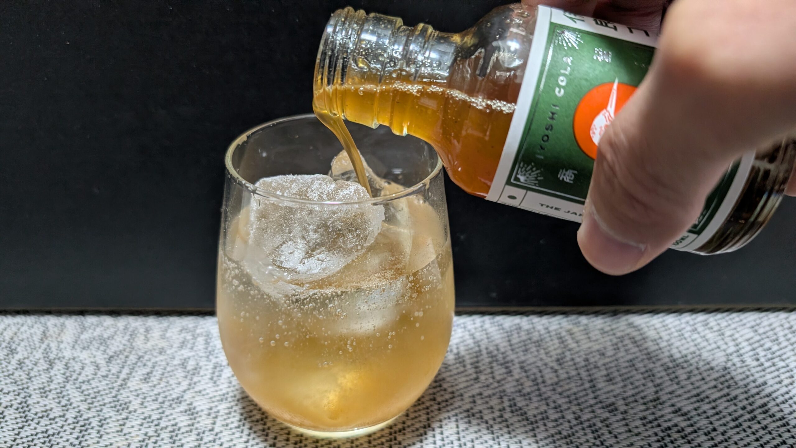 受けとって即開封。さっそくイヨシコーラ「魔法のシロップ」THE JAPAN EDITIONを飲んでみました。看板商品であるイヨシコーラ「魔法のシロップ」と比べると、柚子や山椒・クロモジや蜂蜜など、日本各地から厳選した素材を使用した限定フレーバーになっています。
